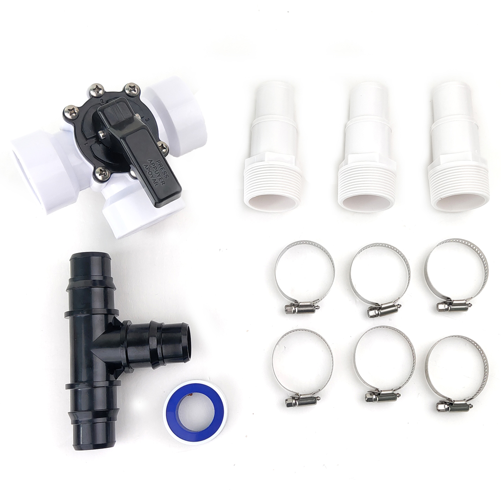 P226812pcs bypass set3 Way Valve: ABSClamp: SS 202Connector: ABST valve: ABSTape: PTFESize: D. 40mmSize: 57*50.5*12mmSize: D4.85*10.25Size: 96.7*151.3mmSize: 12*1000mm
